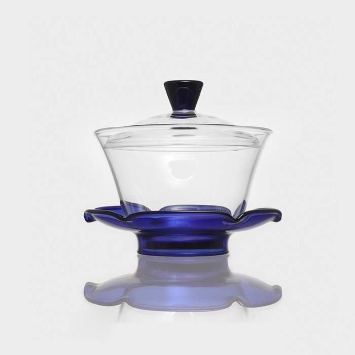 Пиала для чая стеклянная «Гайвань», 250 мл, с подставкой и крышкой