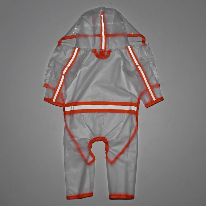 Дождевик-комбинезон для собак, р-р XS (ДС 20, ОГ 32 см, вес 1-3 кг), прозрачный-оранжевый