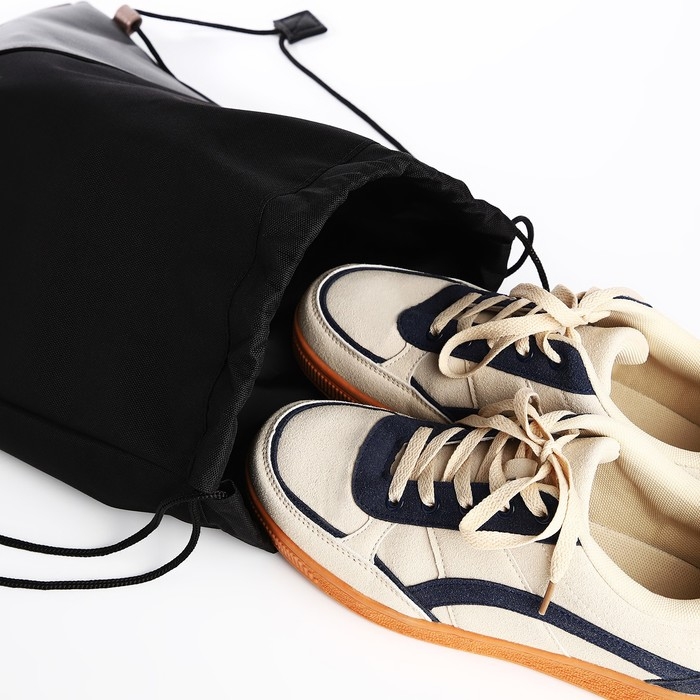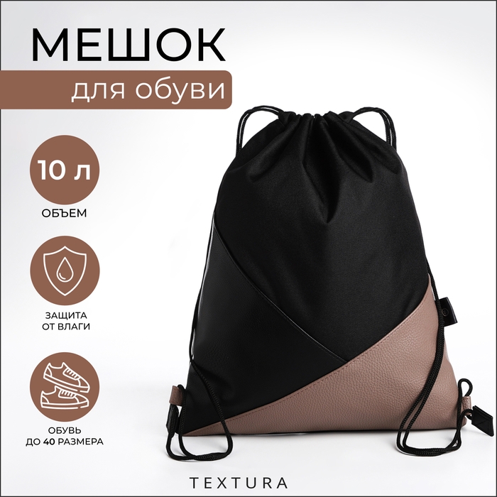Сумка для обуви, отдел на шнурке, TEXTURA, цвет чёрный/бежевый