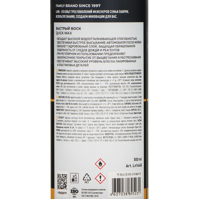 Быстрый воск LAVR, 500 мл, триггер Ln1448