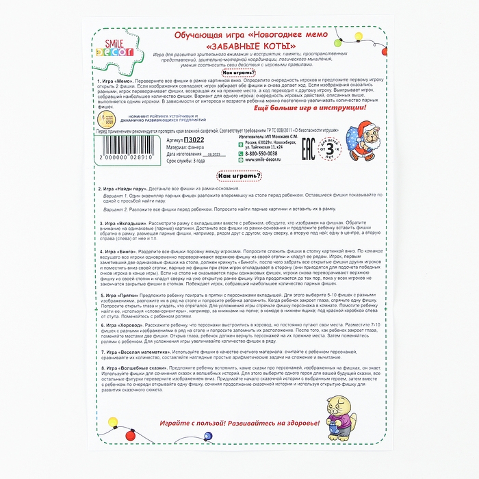 Обучающая игра «Новогоднее мемо: Забавные коты»