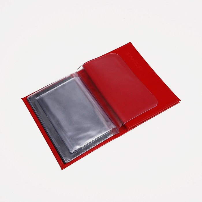 Обложка для автодокументов, отдел для паспорта, цвет красный