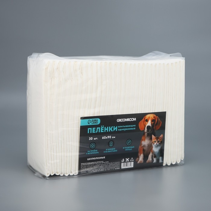 Пелёнки впитывающие целлюлозные для животных, 60 х 90 см, 30 шт
