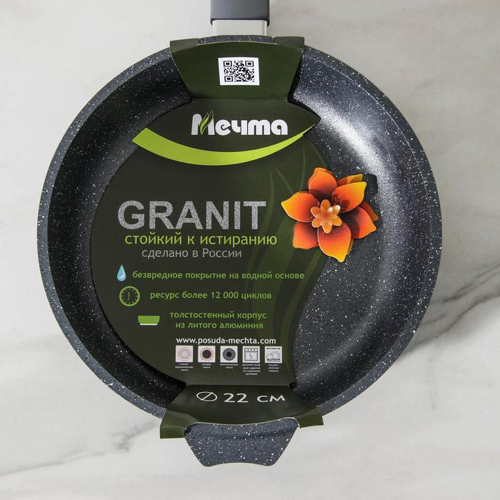 Сковорода «Гранит», d=22 см, пластиковая ручка, антипригарное покрытие, цвет серый