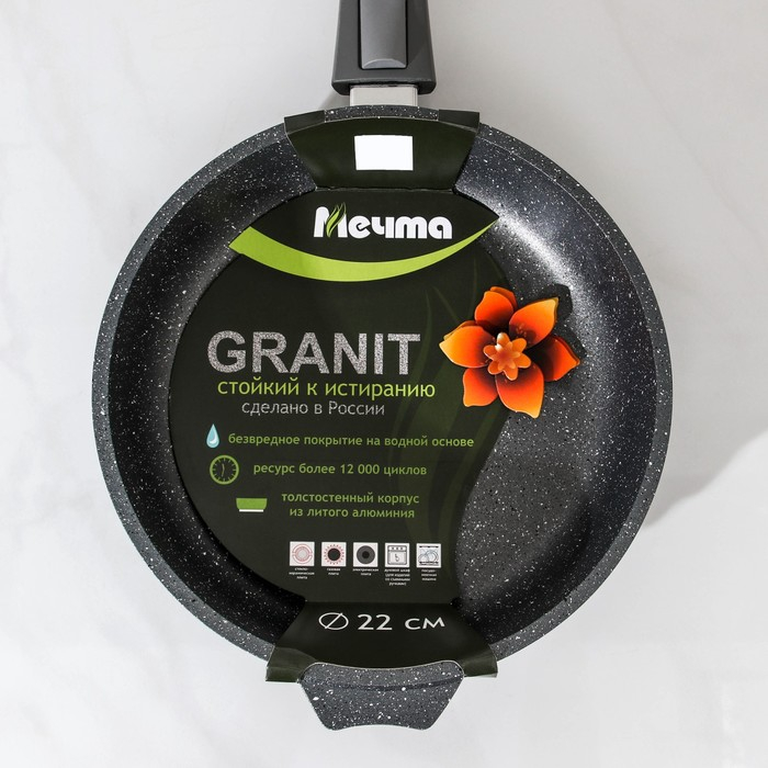 Сковорода «Гранит», d=22 см, съёмная ручка, антипригарное покрытие, цвет серый
