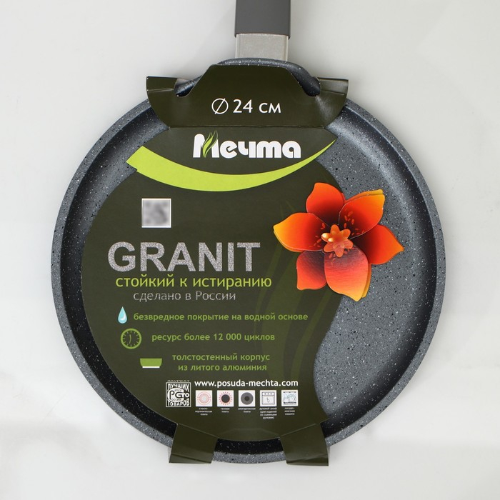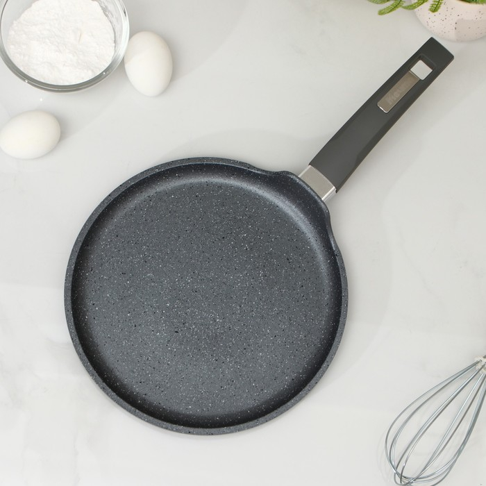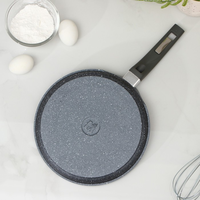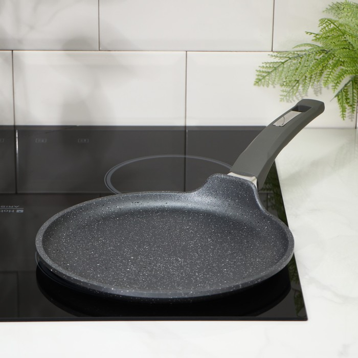 Сковорода блинная «Гранит», d=24 см, пластиковая ручка, антипригарное покрытие, цвет серый