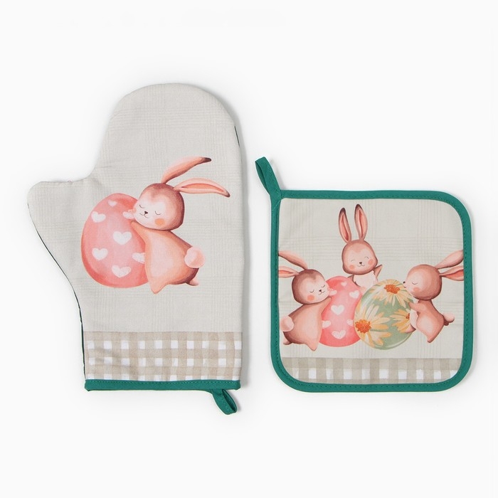 Набор кух. Этель "Пасхальный кролик" варежка-прихватка 20х28см, прихватка 19х19см,100% хл
