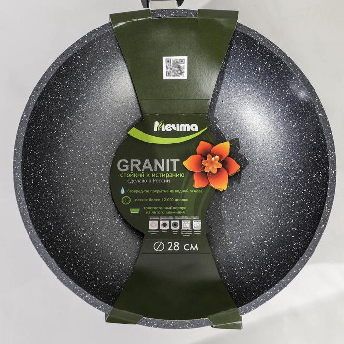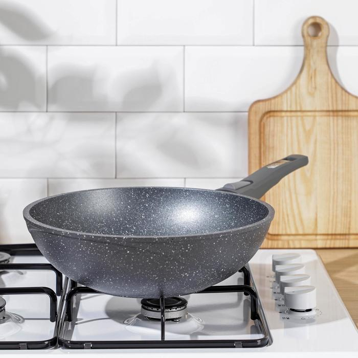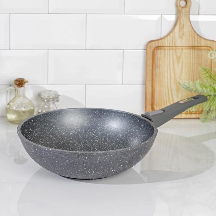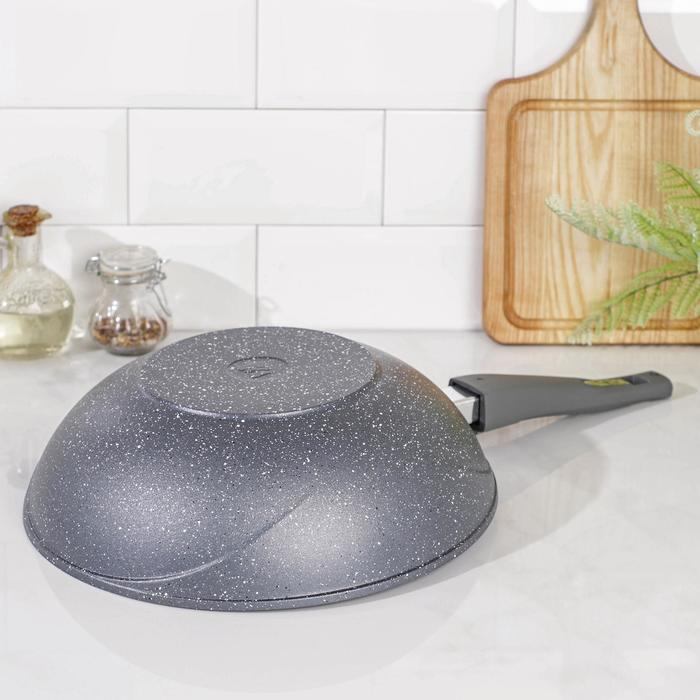 Сковорода-ВОК «Гранит», d=28 см, съёмная ручка, антипригарное покрытие, цвет серый