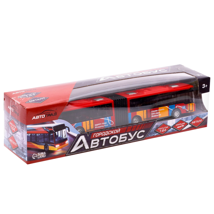Автобус металлический «Городской транспорт», инерционный, масштаб 1:64, цвет красный