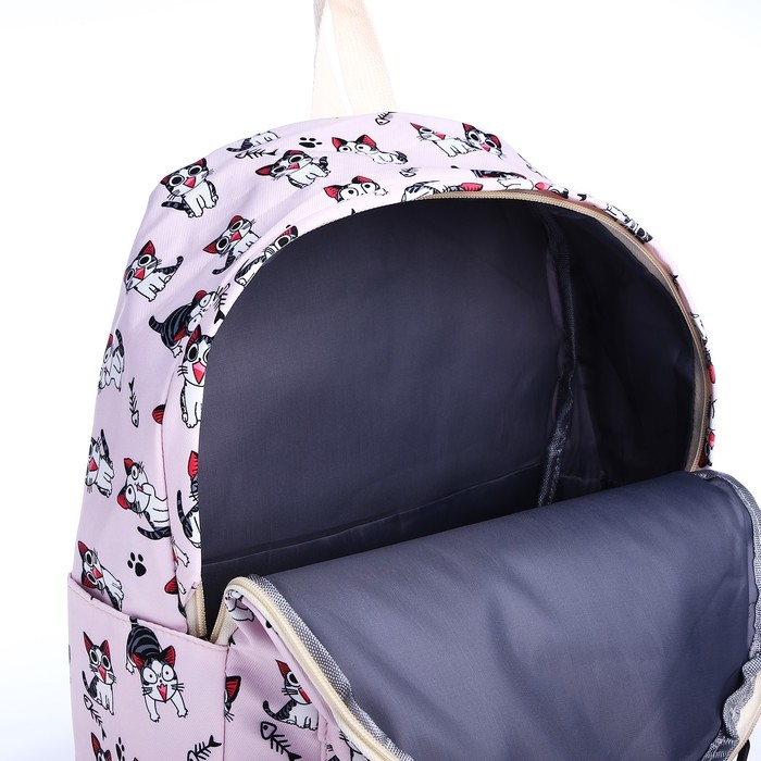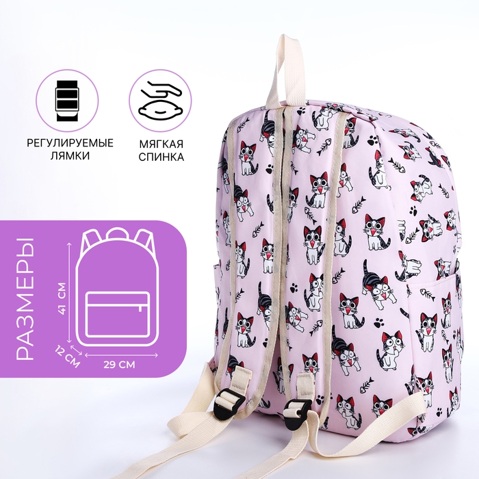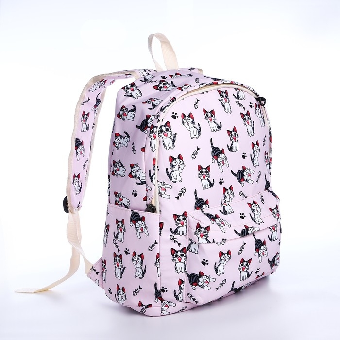 Рюкзак школьный из текстиля на молнии, 3 кармана, пенал, цвет розовый