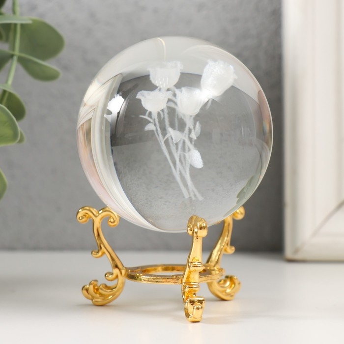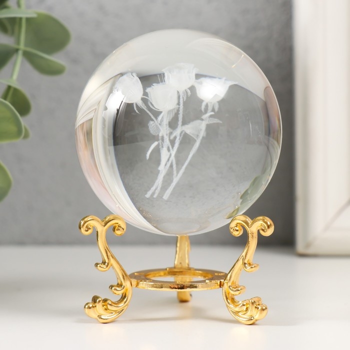 Сувенир стекло "Розы" d=6 см ажурная подставка 8,5х6х6 см
