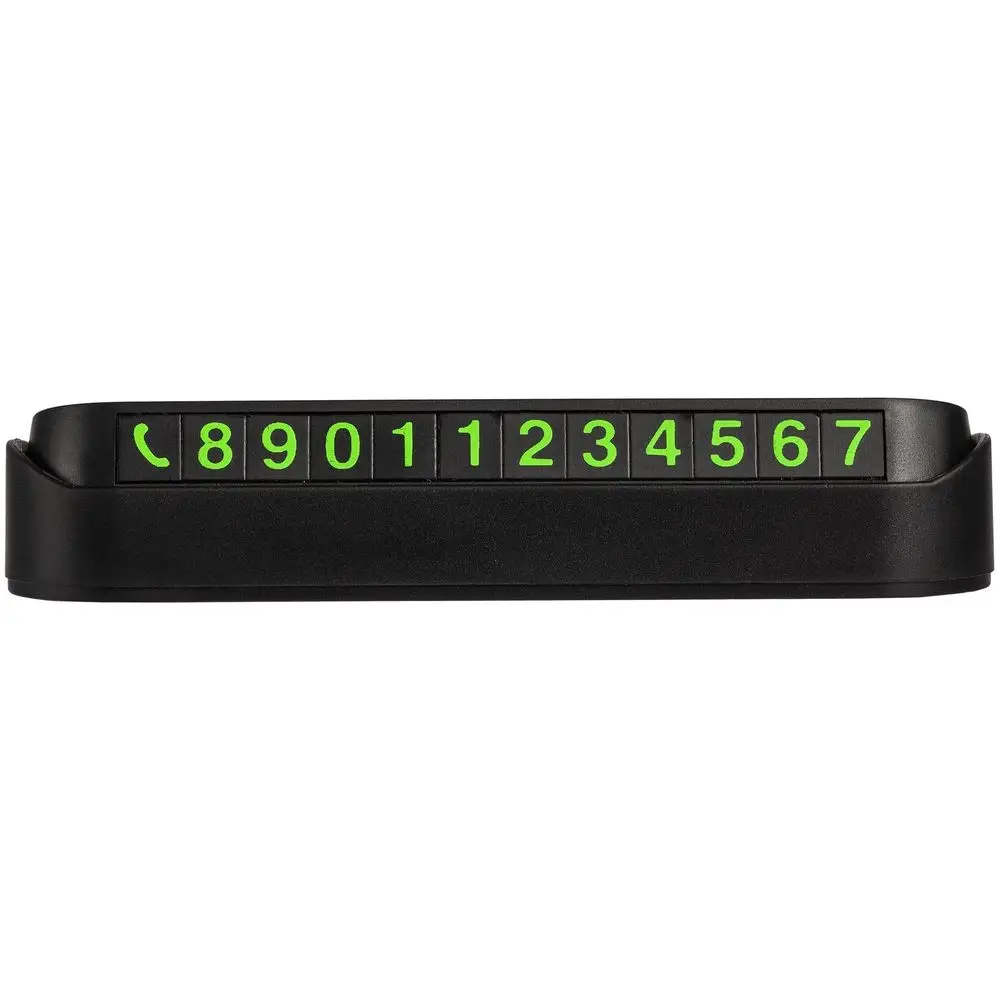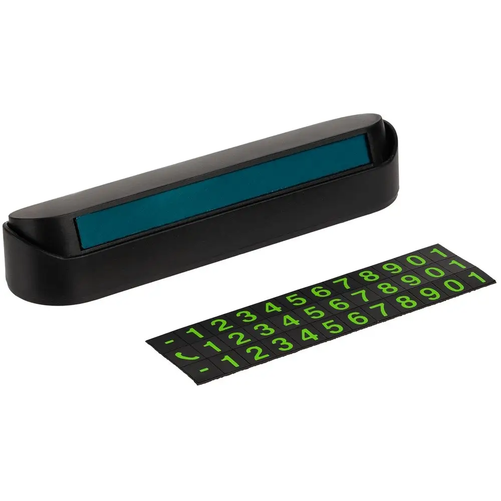В наборе подставка с клейким основанием и комплект магнитных символов — при изменении номера телефона данные на визитке легко скорректировать.