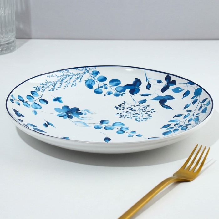 Тарелка Риштанская Керамика "Узоры", синяя, глубокая, микс, 20 см