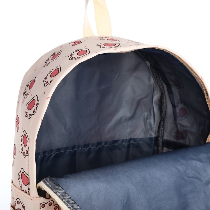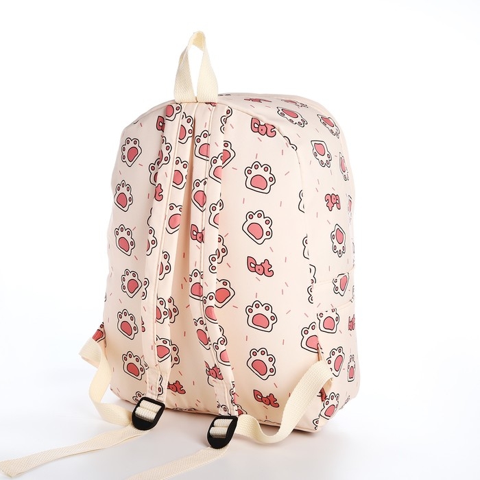 Рюкзак школьный из текстиля на молнии, 3 кармана, цвет бежевый/розовый