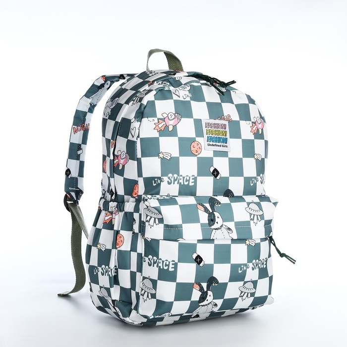 Рюкзак школьный из текстиля на молнии, 3 кармана, цвет зелёный