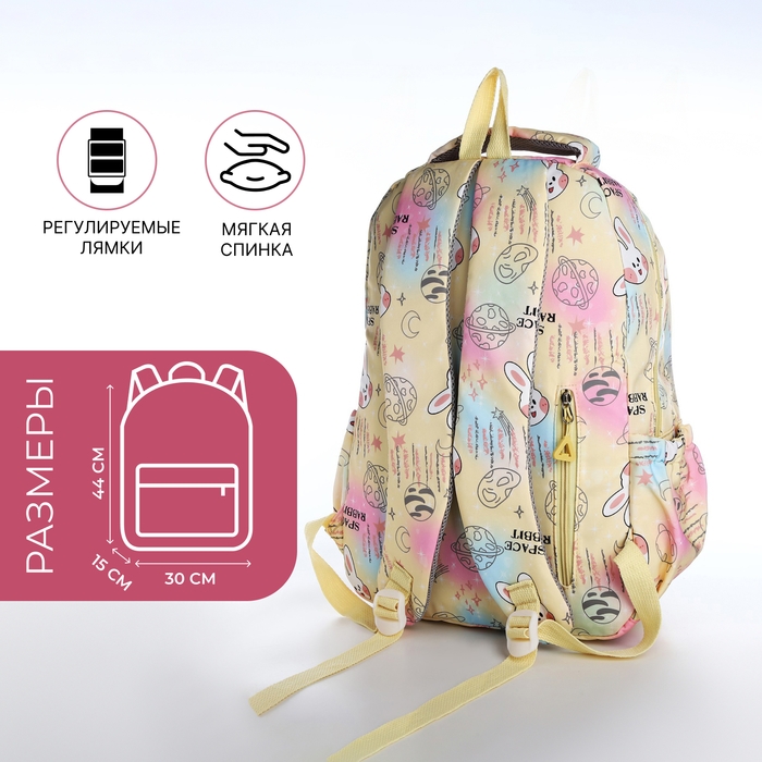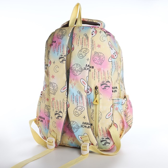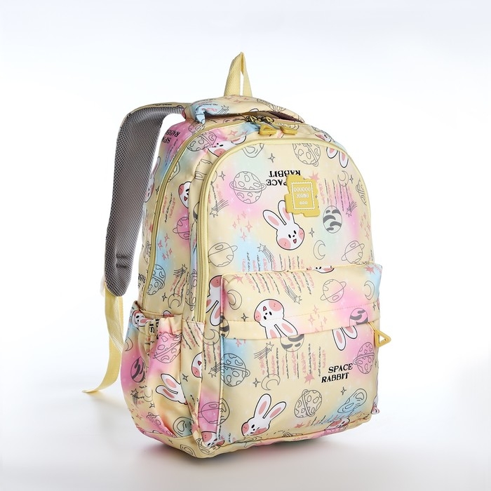 Рюкзак школьный из текстиля 2 отдела на молнии, 4 кармана, цвет жёлтый