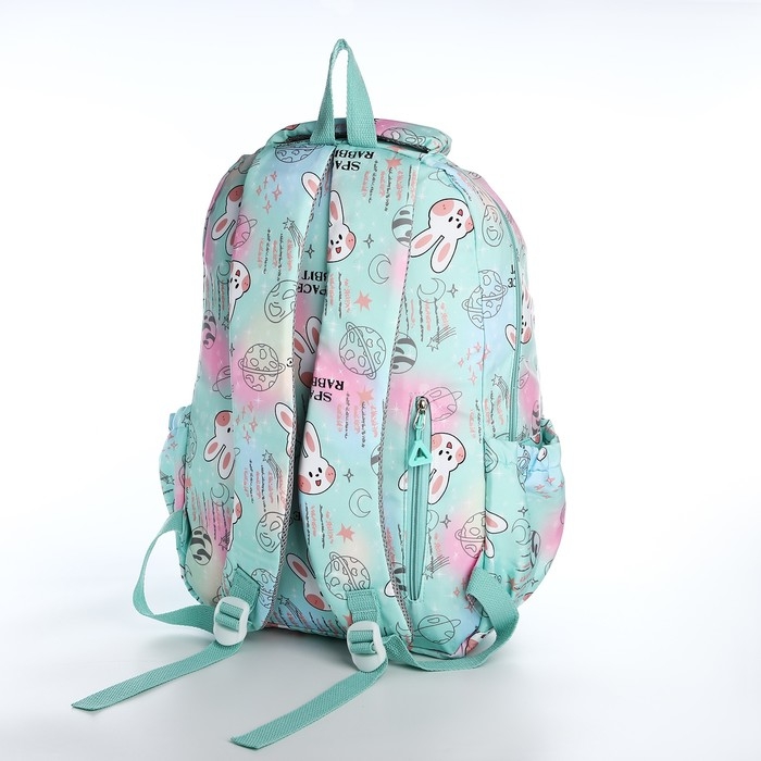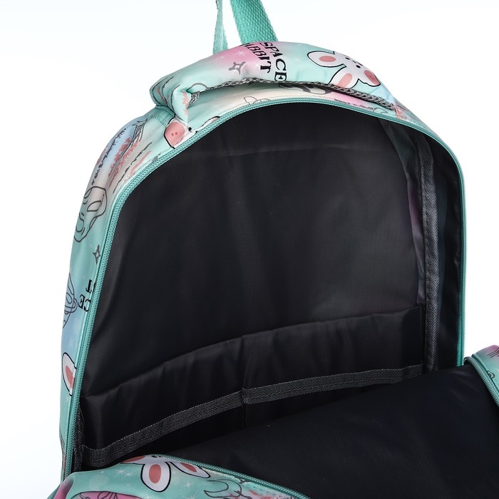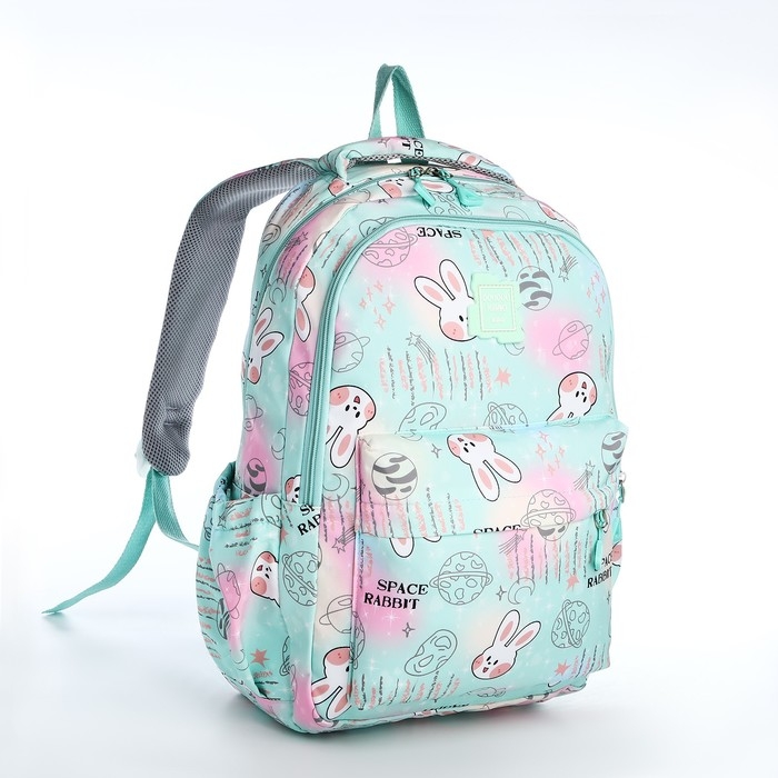 Рюкзак школьный из текстиля 2 отдела на молнии, 4 кармана, цвет зелёный
