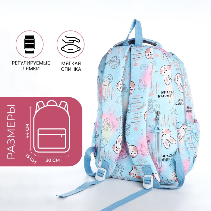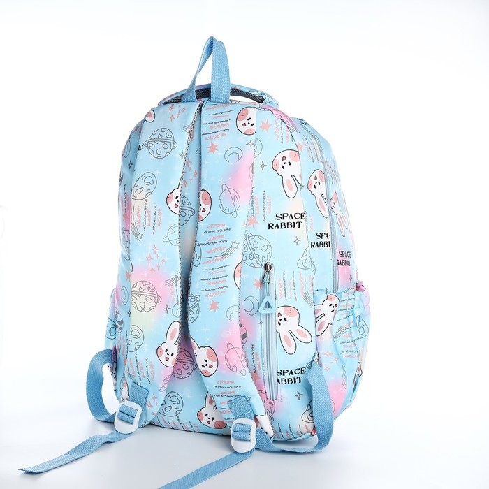 Рюкзак школьный из текстиля 2 отдела на молнии, 4 кармана, цвет голубой