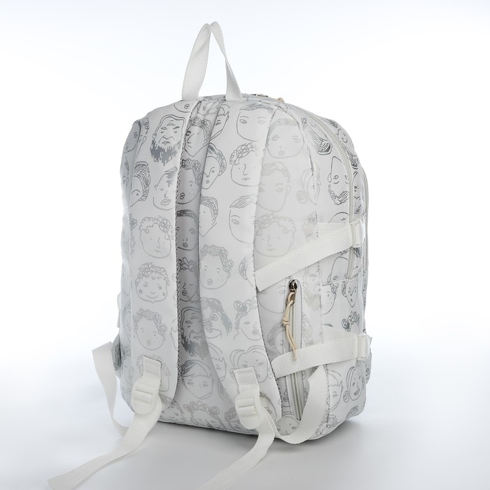 Рюкзак школьный из текстиля 2 отдела на молнии, 4 кармана, цвет белый