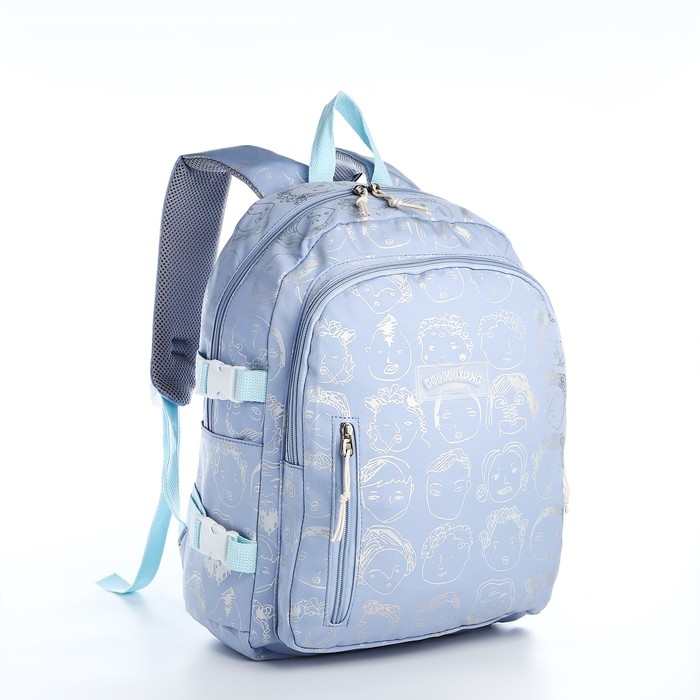 Рюкзак школьный из текстиля 2 отдела на молнии, 4 кармана, цвет голубой
