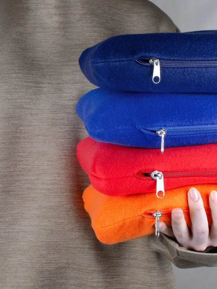 Флисовый плед с чехлом на молнии. Если сложить плед в чехол, получается подушка.
