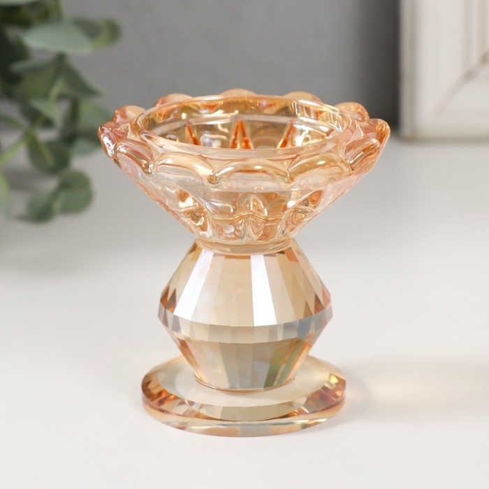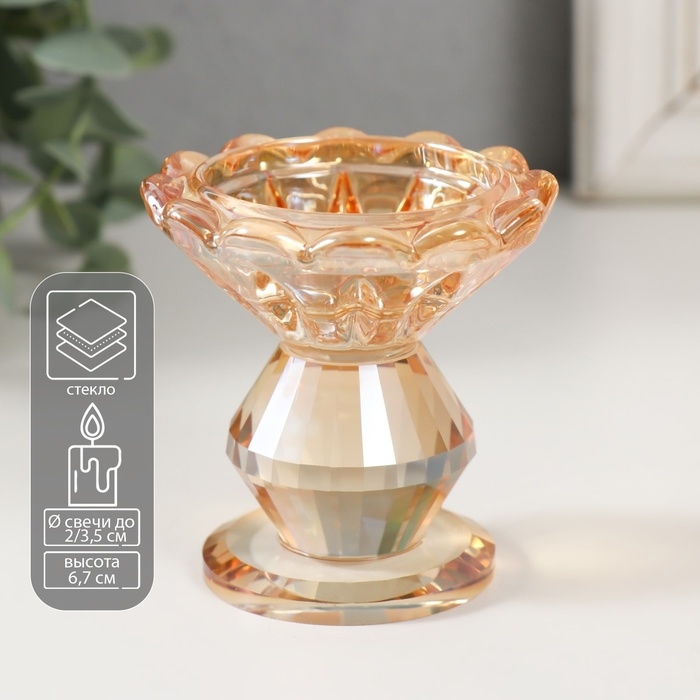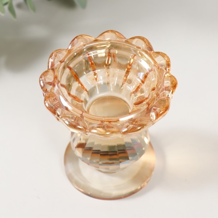 Подсвечник стекло на 1 свечу "Бутон" d=2 и 3,5см карамель 6,7х6,7х6,7 см
