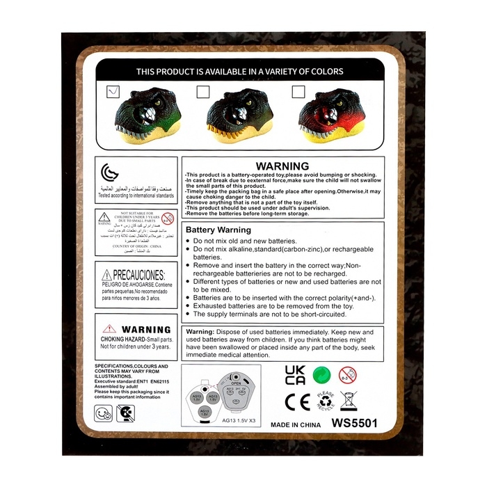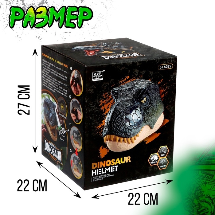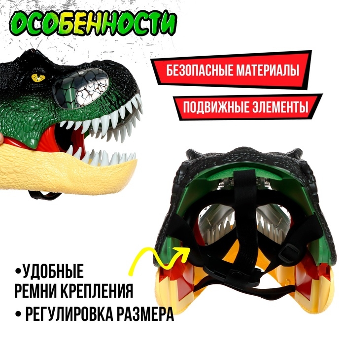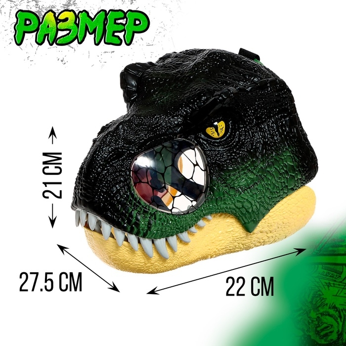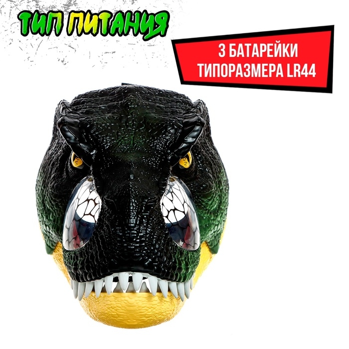 Интерактивный шлем динозавра «Тираннозавр», свет, звук, работает от батареек