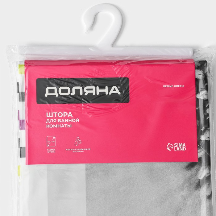 Штора для ванны Доляна «Белые цветы», 180×180 см, EVA