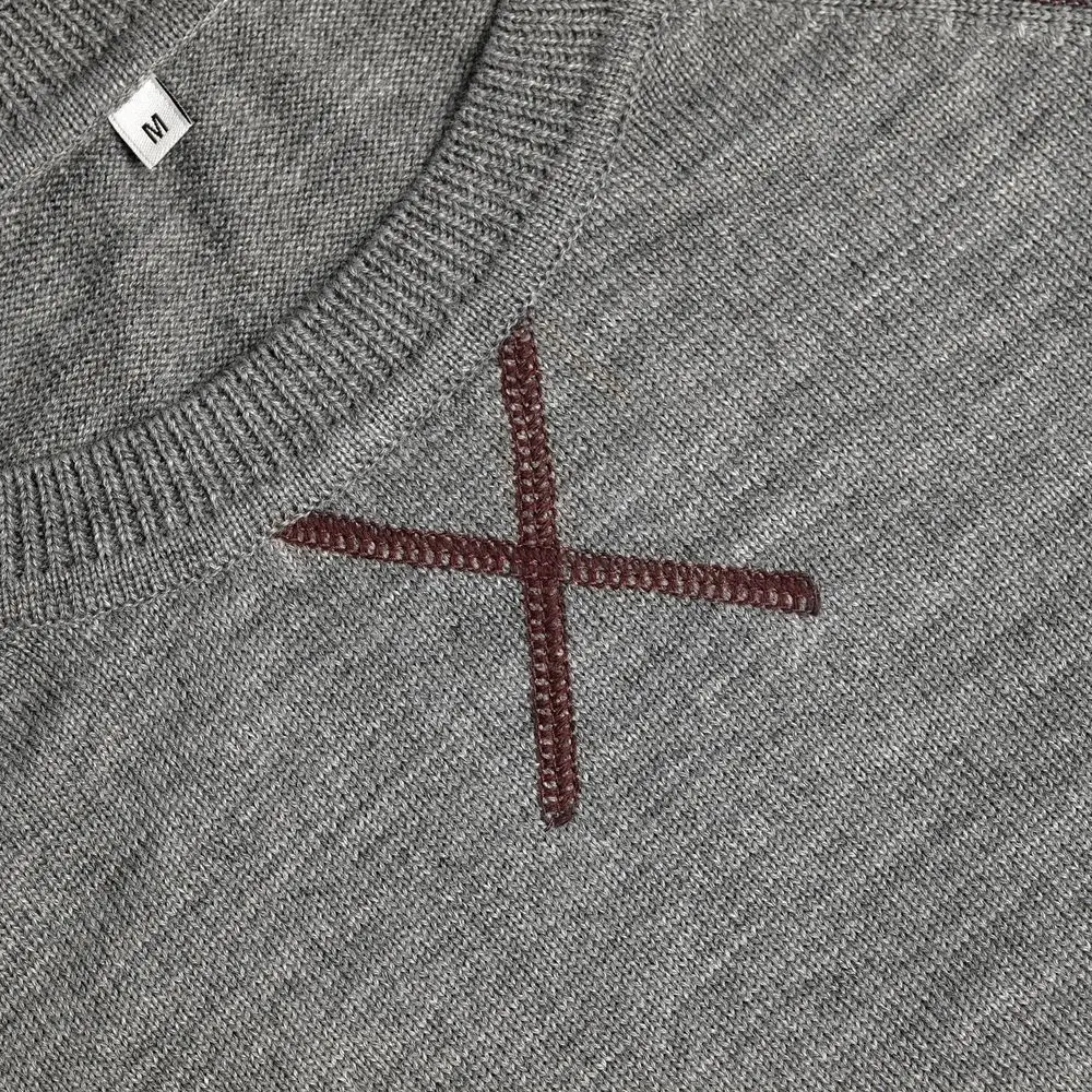 Джемпер Stitch с контрастной отделкой, серый с бордовым, размер XL
