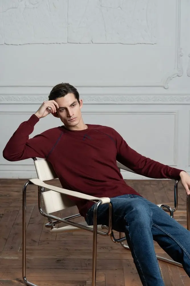 Джемпер Stitch с контрастной отделкой, синий с зеленым, размер S