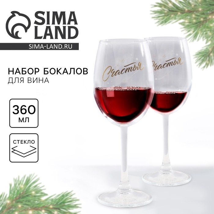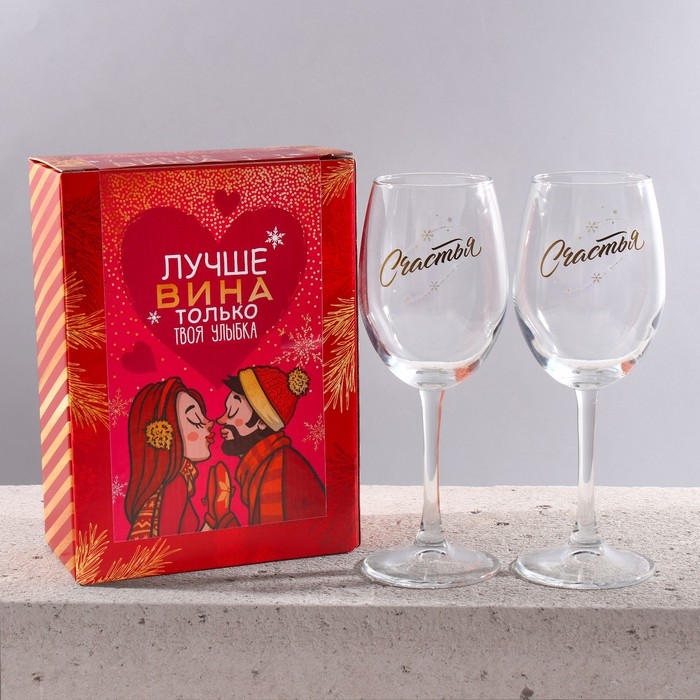 Бокалы для вина «Твоя улыбка», подарочный набор на Новый год, 360 мл, 2 шт