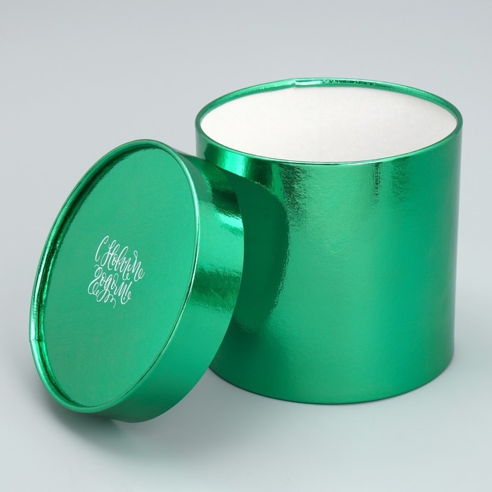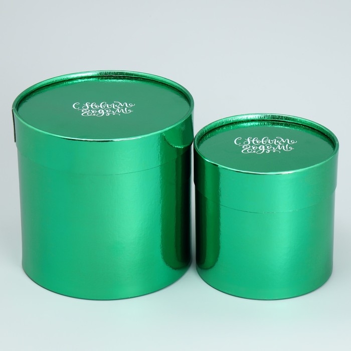 Набор коробок 2в1 круглые «С Новым годом», зелёный металлик, 12 х 12, 15 х 15 см, Новый год
