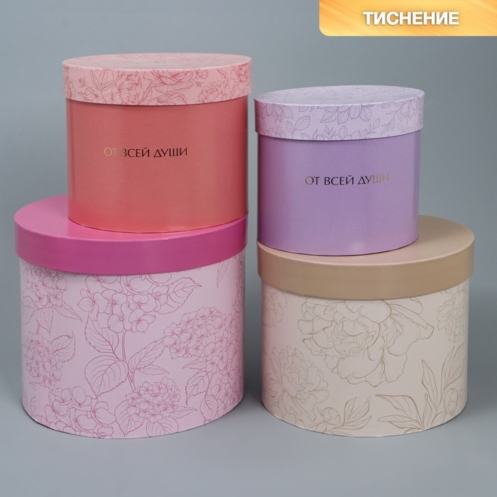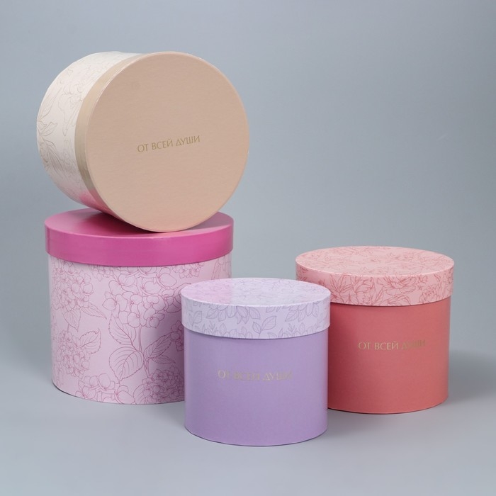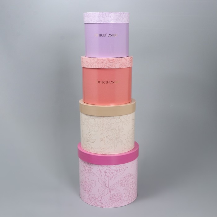 Набор шляпных коробок для цветов 4 в 1, упаковка подарочная, «Минимализм», 14 х 13 см - 20 х 17.5 см