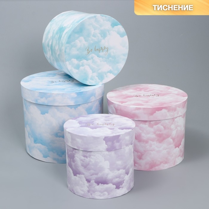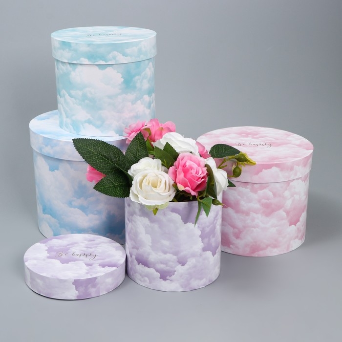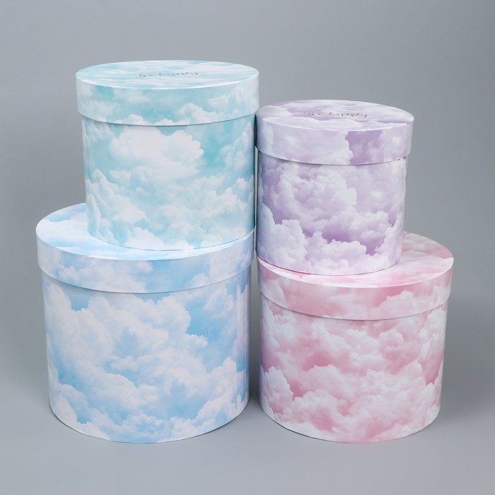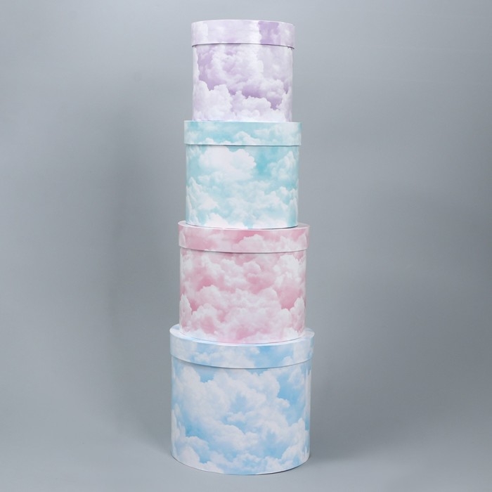 Набор шляпных коробок для цветов 4 в 1, упаковка подарочная, «Облака», 14 х 13 см - 20 х 17.5 см