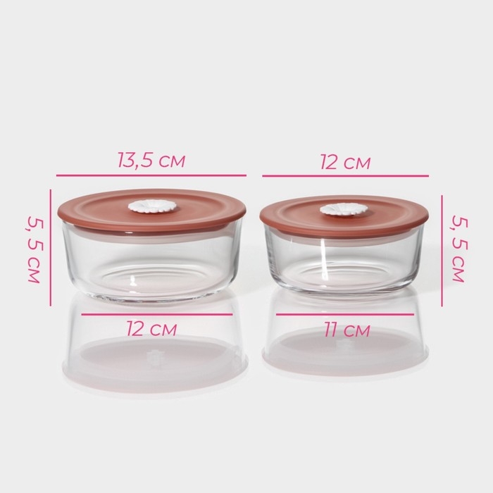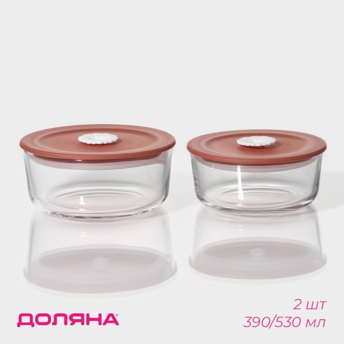 Контейнеры стеклянные с крышкой Доляна «Коралл», 390/530 мл