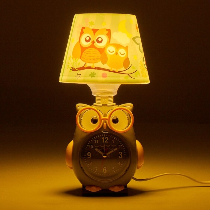 Часы с подсветкой "Совушка" детские настольные, плавный ход, на батарейках АА