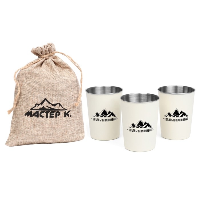 Набор стаканов из 3 штук по 320 мл из пищевой нержавеющей стали с удобным и компактным холщевым мешочком с завязками для хранения и переноски. Отлично подходит для любителей охоты, рыбалки и людей любящих вылазки на природу, в горы, путешествия. Легкие и компактные, удобно брать с собой на отдых.