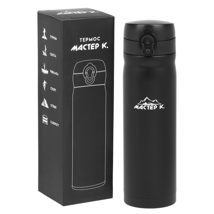 Термос, серия: Топ, "Мастер К", 500 мл, сохраняет тепло 12 часов, черный