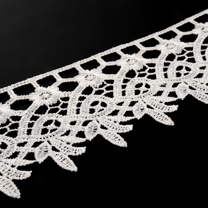 Кружево гипюровое, 45 мм × 9 ± 0,5 м, цвет белый