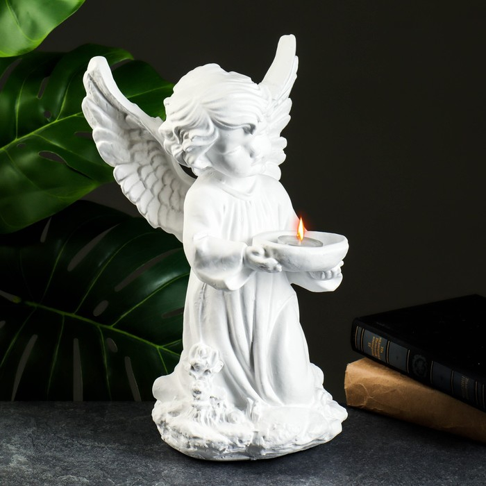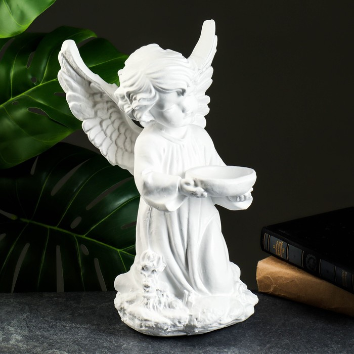 Фигура "Ангел с чашей" белый 19х19х33см