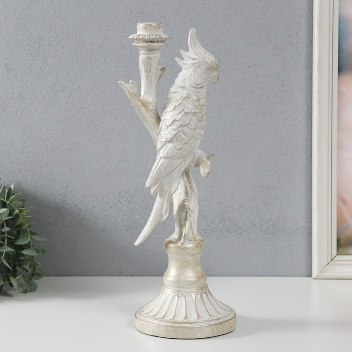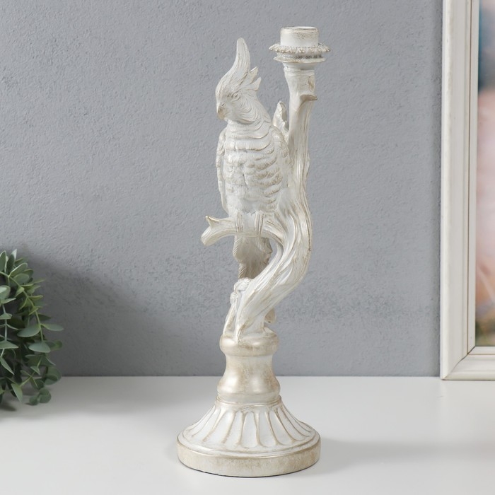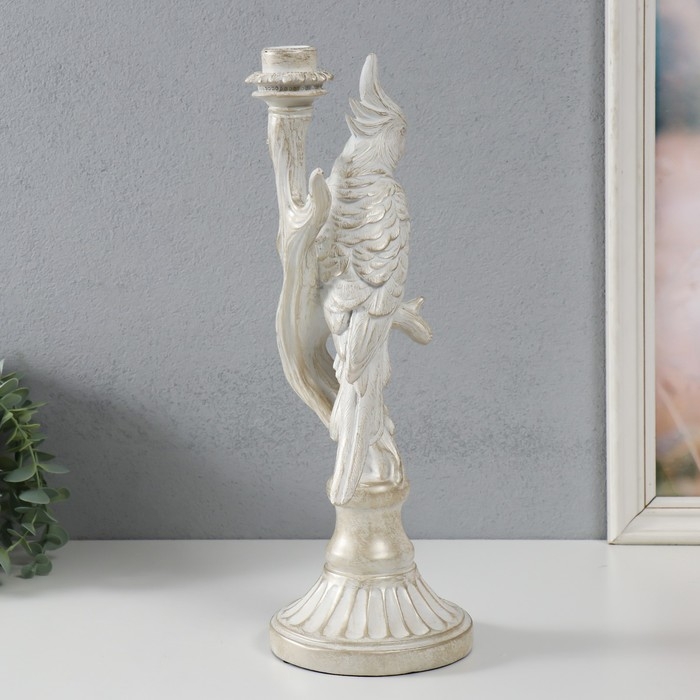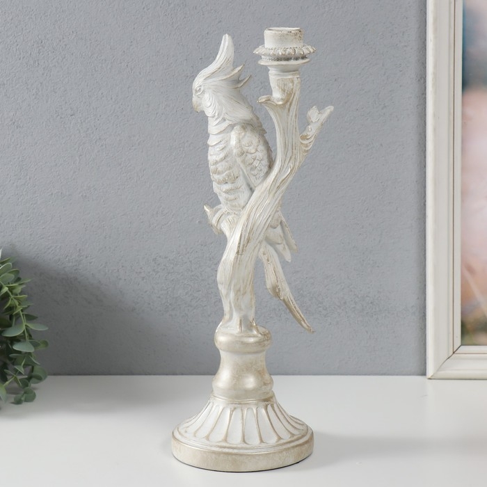 Подсвечник полистоун "Белый попугай на ветке" под металл 12,4х12,2х36 см