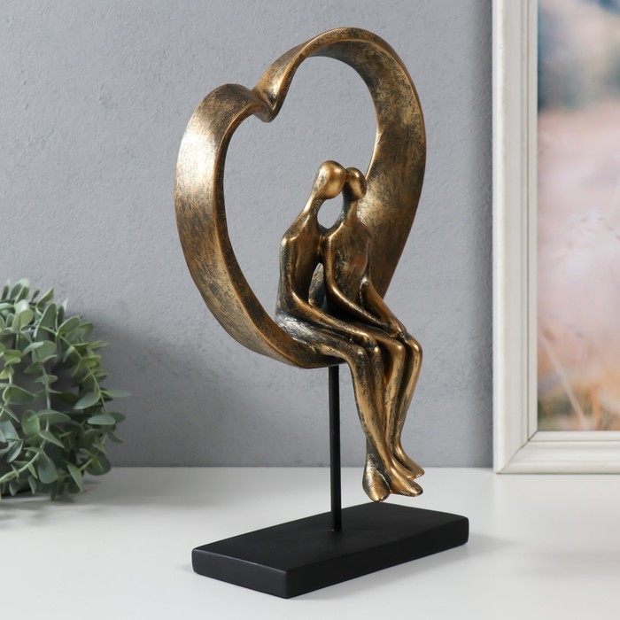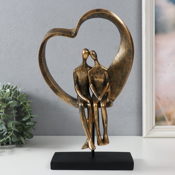 Сувенир полистоун "Двое в сердечке" под металл 19,4х10,4х31,5 см