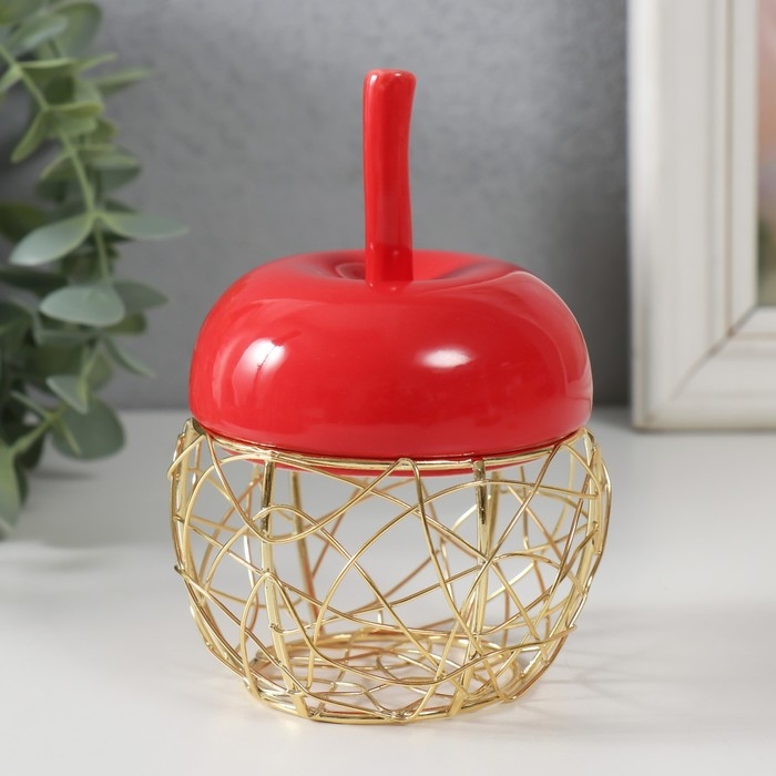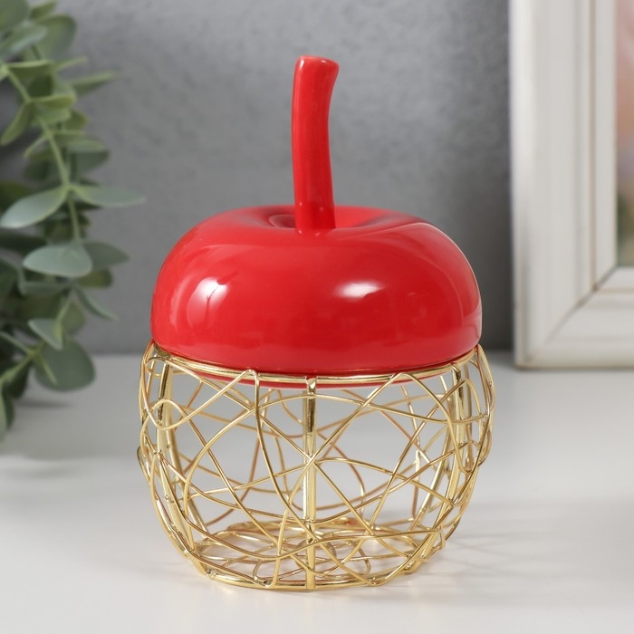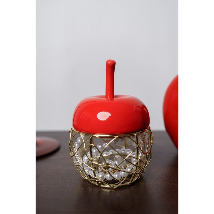 Шкатулка керамика, металл "Яблочко" красная 8,5х8,5х12 см