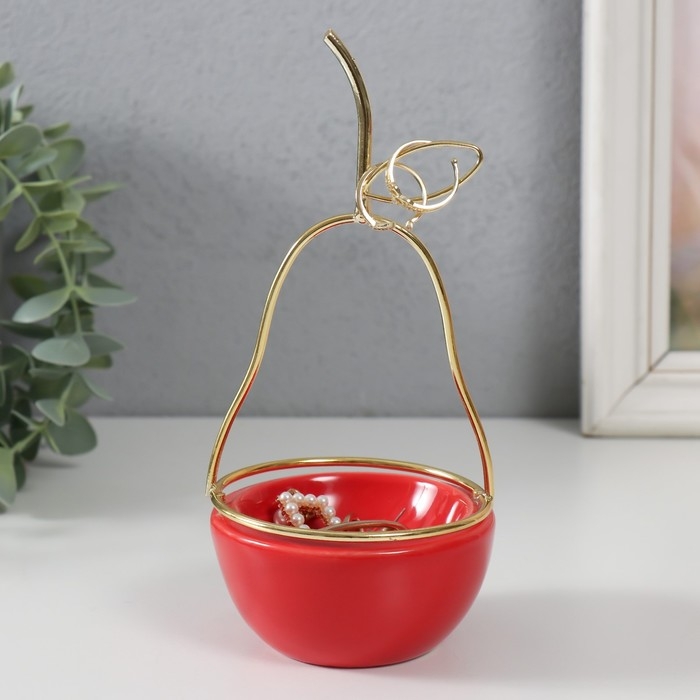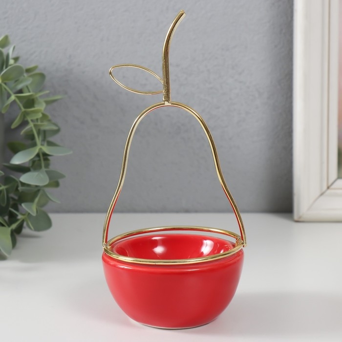Сувенир керамика, металл подставка "Груша" красная с золотом 8х8х17 см