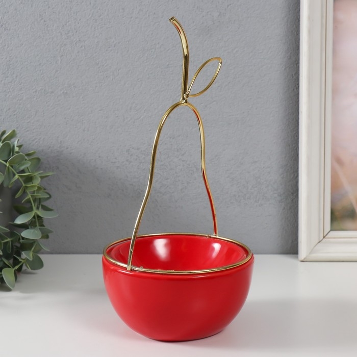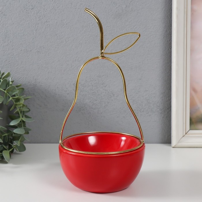 Сувенир керамика, металл подставка "Груша" красная с золотом 13х13х25,5 см