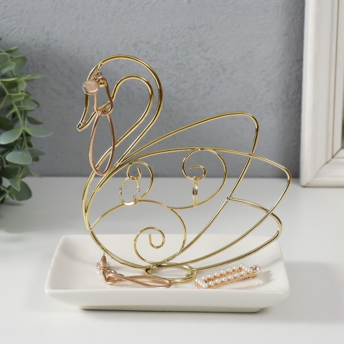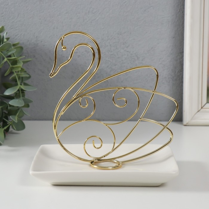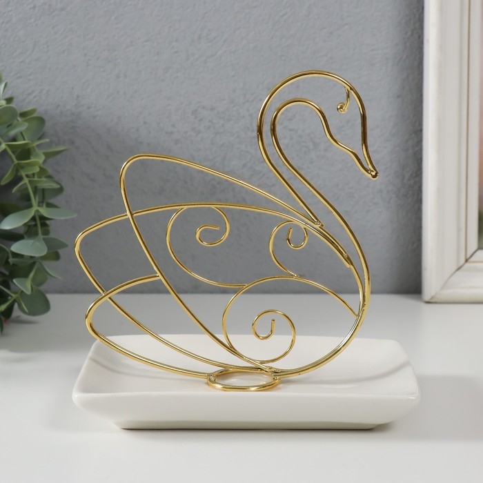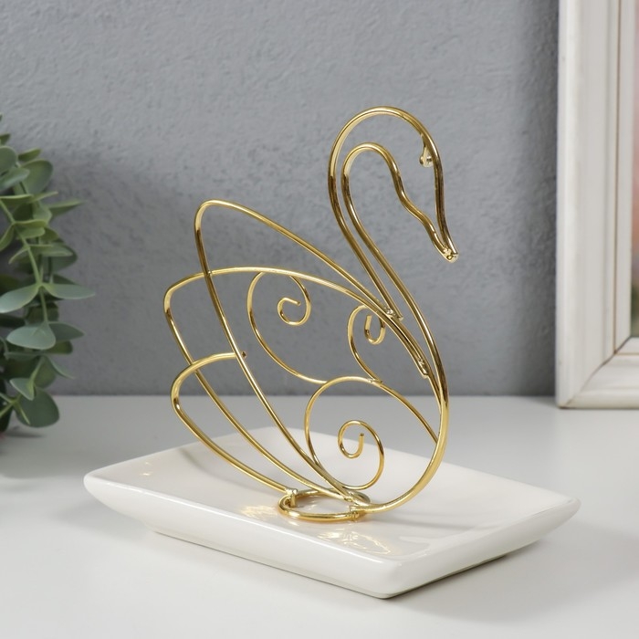 Сувенир керамика, металл подставка "Лебедь" белый с золотом 15,5х10,5х15,3 см