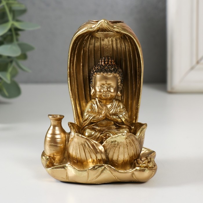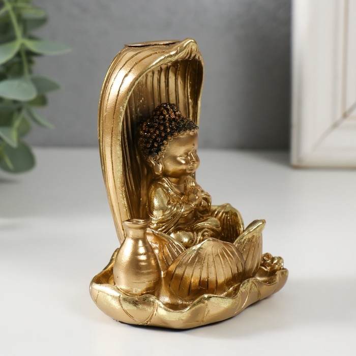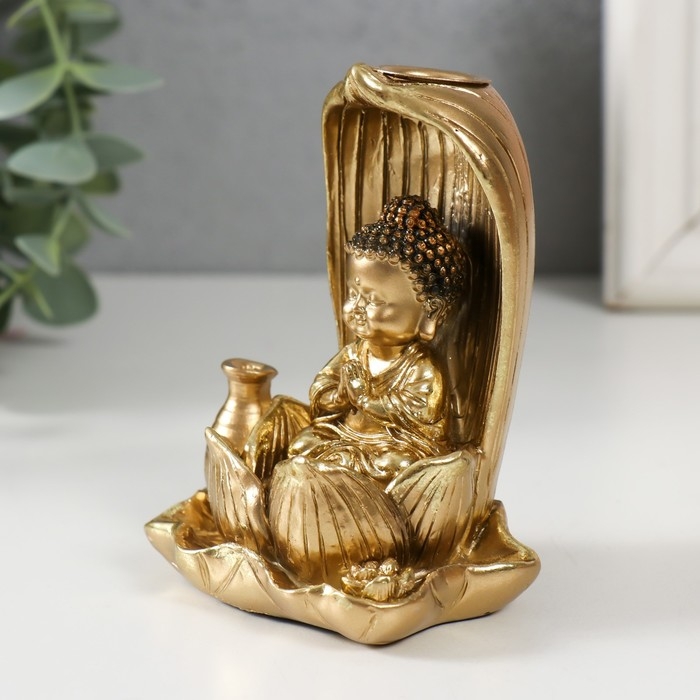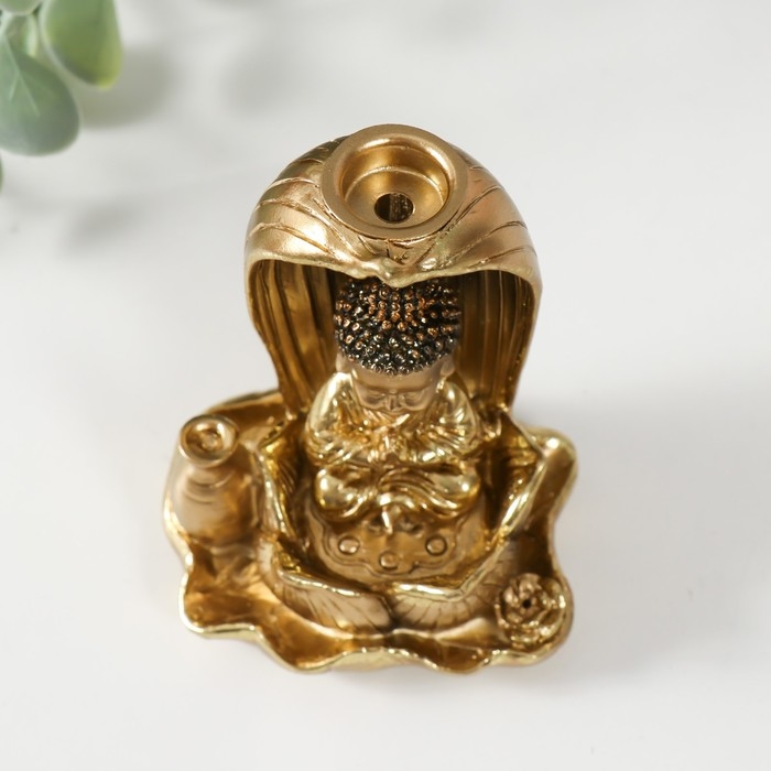 Подставка под благовония полистоун "Маленький будда" золото 6,1х7,5х10 см