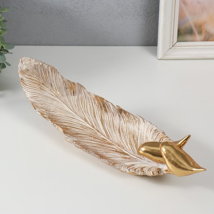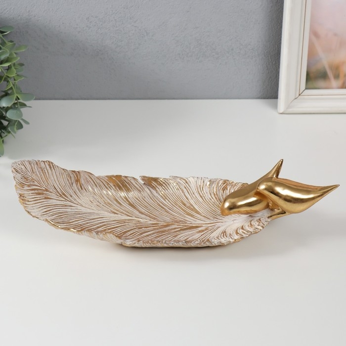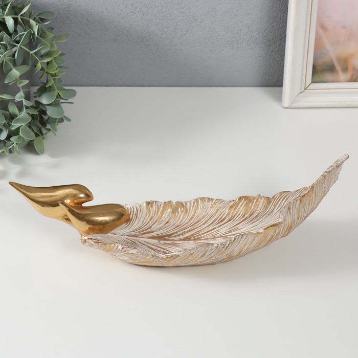 Сувенир полистоун подставка "Две птицы на листе" золото 36х11,3х11,7 см