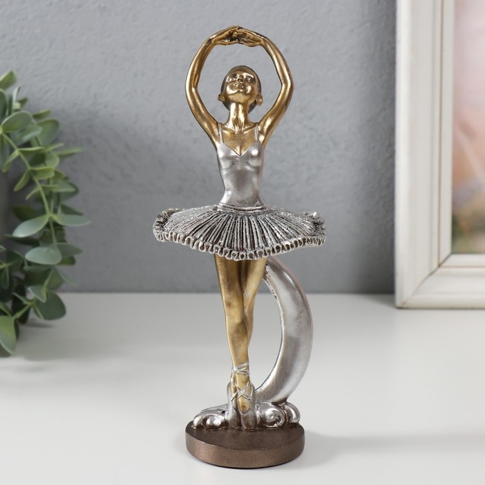 Сувенир полистоун "Маленькая балерина в серебристой пачке, с месяцем" 7,9х7х19 см