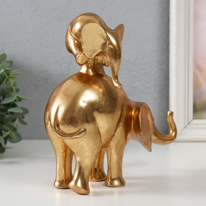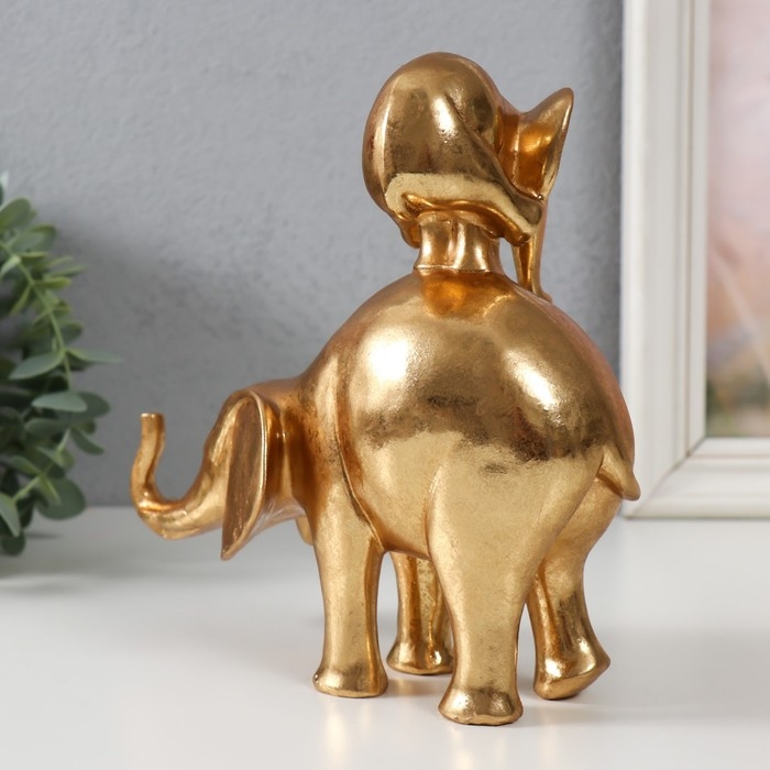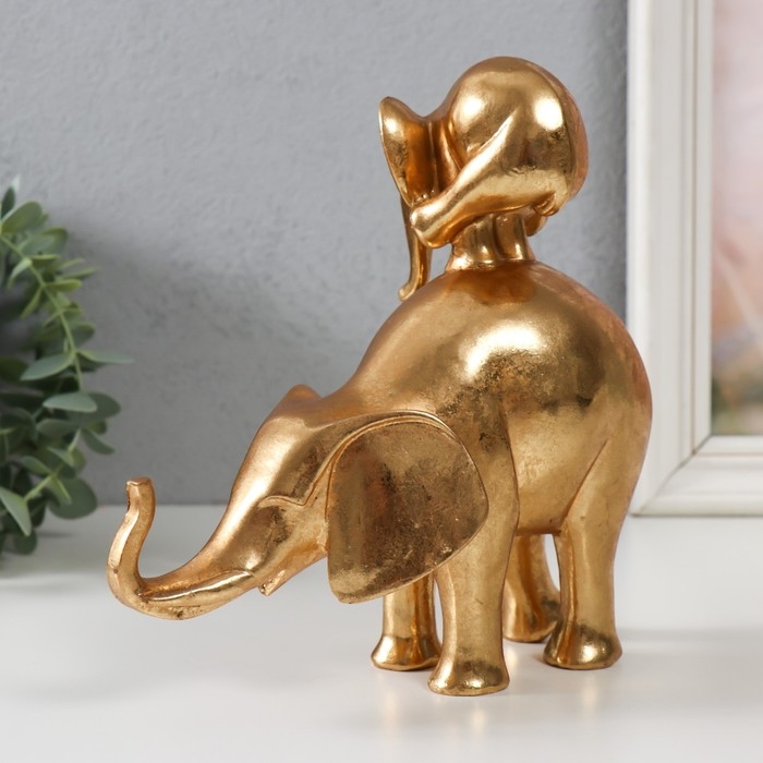 Сувенир полистоун "Слон со слонёнком на спине - пирамидка" золото 19х8,8х18,8 см